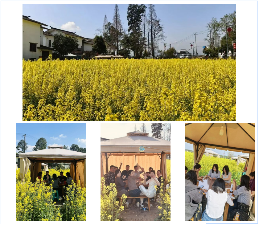 3月4日,天气晴朗,阳光明媚,为不负这春日好时光,公司决定提前庆祝三八国际妇女节,组织总部全体女职工走进五星村烂漫油菜花海,开展一场集赏花踏青、趣味休闲、美食欢聚于一体的团建活动,在春日美景中共度温馨美好时光。